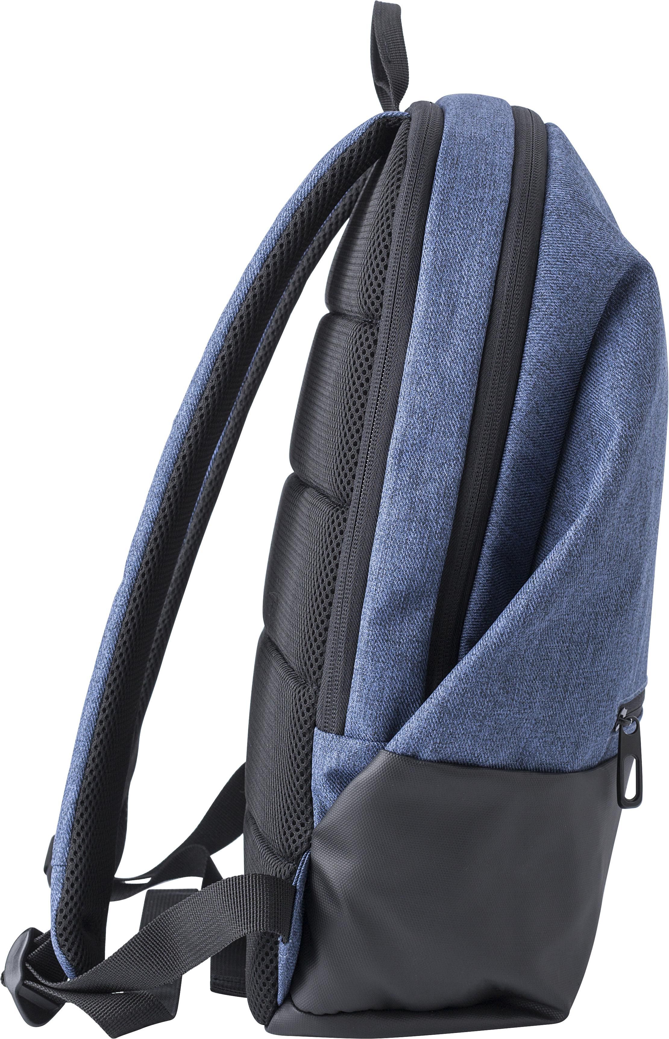 Rucksack aus Polyester (600D + 300D) mit einem Hauptfach und einer Vordertasche mit Reißverschluss und verstellbaren Schultergurten. Mit USB-Öffnung an der Seite.